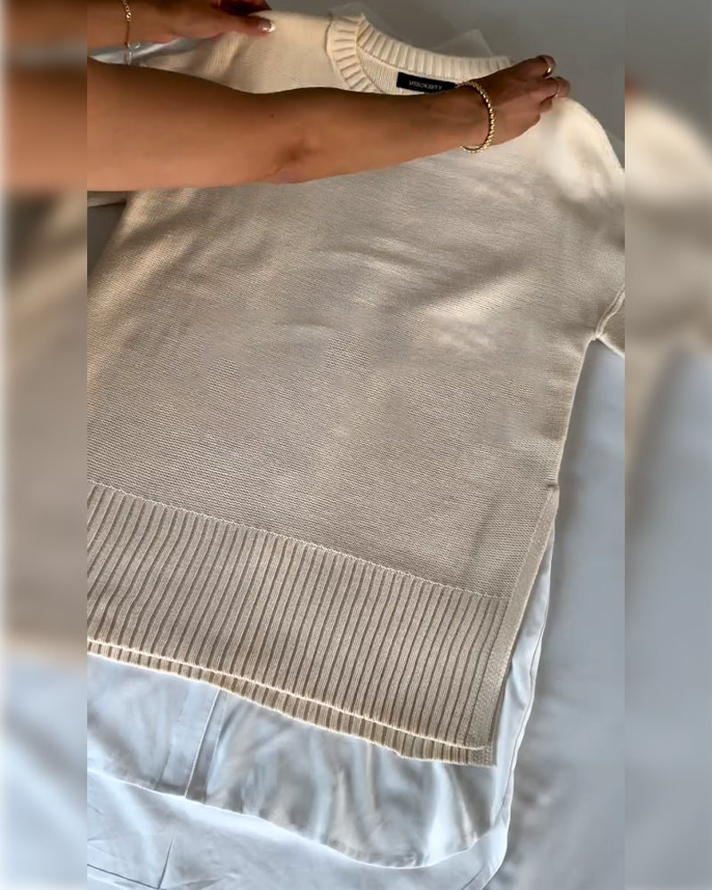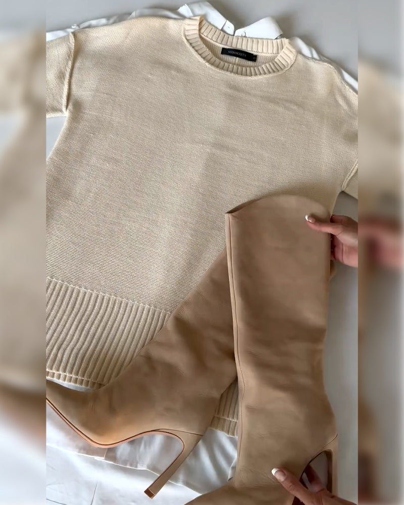 Sweter casualowy okrągły dekolt długi rękaw jednolity kolor