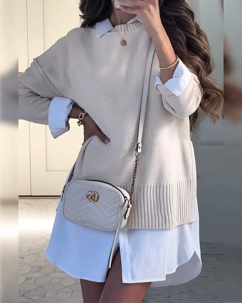 SPECYFIKACJE: Styl: Nieformalny Materiał: Akryl,Poliester Rodzaj Sukienki: Prosty Długość Sukienki: Do kolan Dekolt: Okrągły dekolt Wzór: Jednolity Kolor Rodzaj rękawa: Rękaw typu raglan Długość rękawa: Długi rękaw Detale: Patchwork Typ sylwetki: Regularny Pora roku: Jesień,Zima Okazja: Na co dzień Paczka zawiera: 1 x Sukienka TABELA ROZMIARÓW...