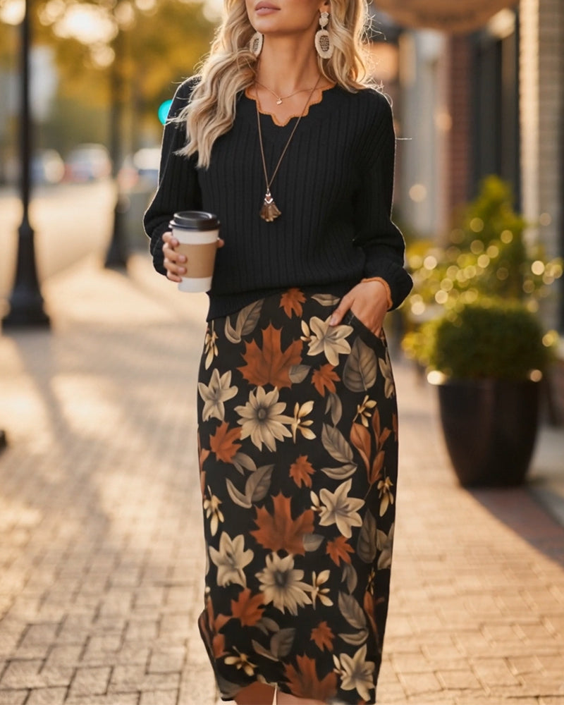 Zestaw Kwiatowy Wzór Patchwork Z Długimi Rękawami
