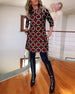 Modna sukienka z długim rękawem i nadrukiem w panterkę