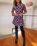SPECYFIKACJA: Styl: Nieformalny Materiał: Bawełna z domieszką Rodzaj Sukienki: Prosty Długość Sukienki: Do kolan Dekolt: Dekolt Kopertowy Wzór: Wzór geometryczny Rodzaj rękawa: Rękaw standardowy Długość rękawa: Długi rękaw Detale: Kieszeń, Guziki Typ sylwetki: Regularny Pora roku: Wiosna, Jesień, Zima Okazja: Na co dzień Paczka zawiera: 1 x S...