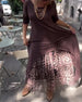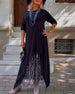 Długa luźna sukienka z rozcięciami po bokach i klapami