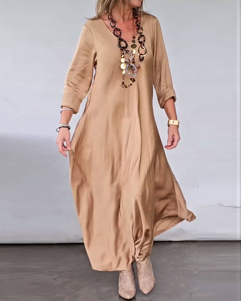Długa luźna sukienka z rozcięciami po bokach i klapami