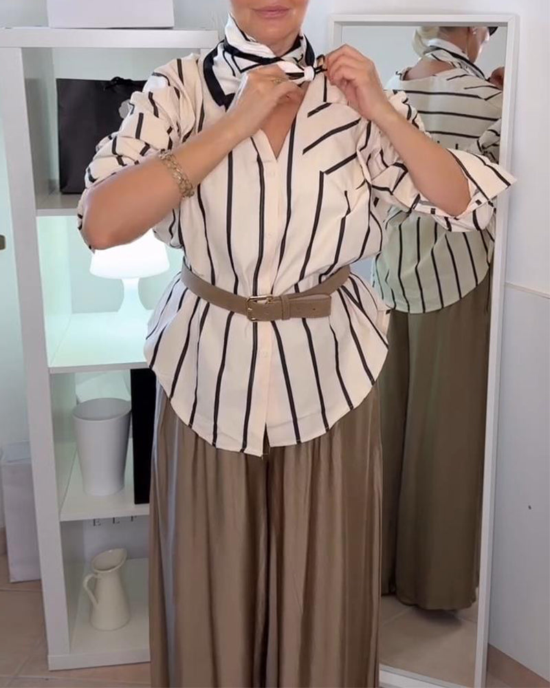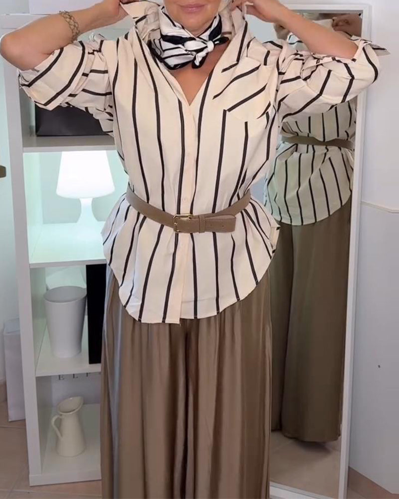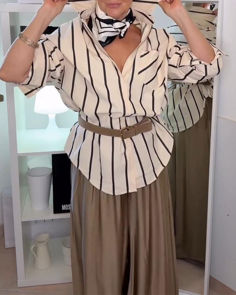 Icon1 Koszula Z Pionowym Paskowym Nadrukiem I Klapami