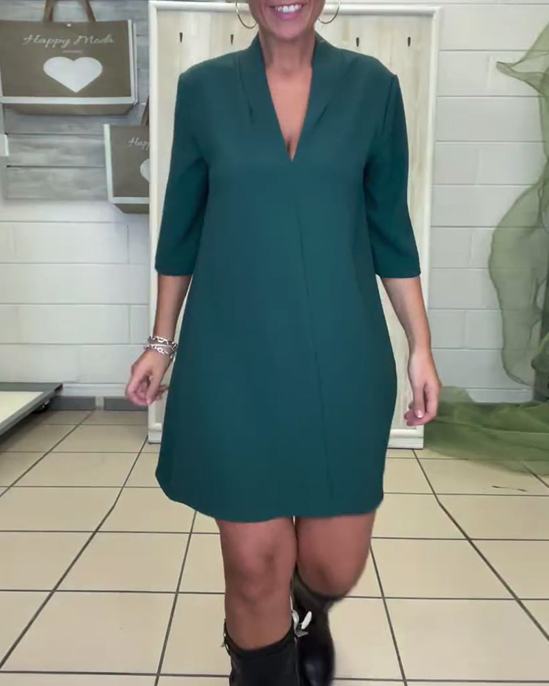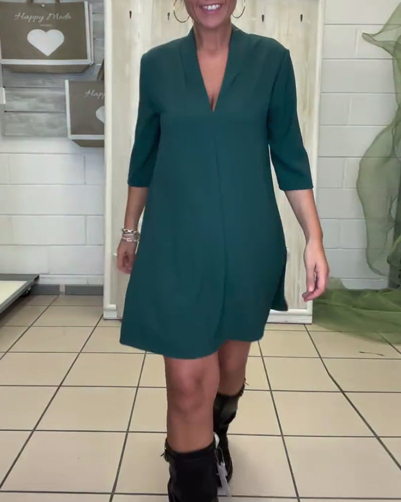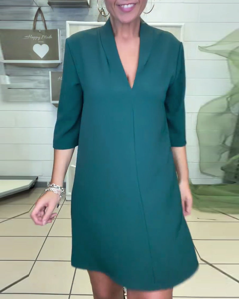 Prosta jednokolorowa elegancka sukienka z długim rękawem i kieszeniami