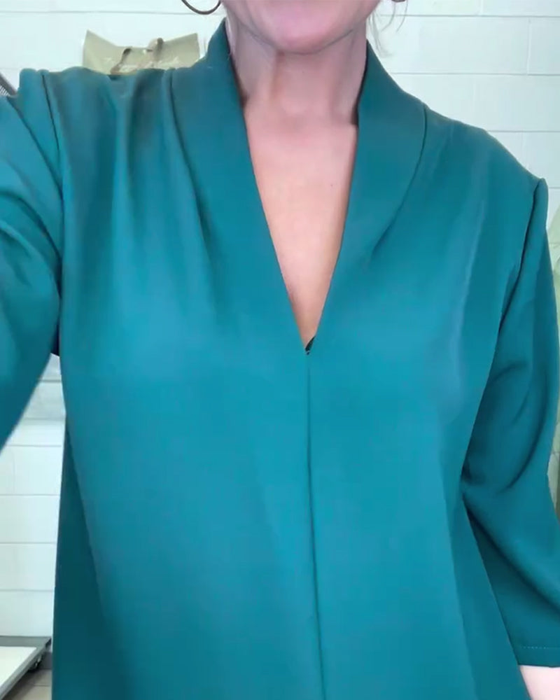 Modna bluzka w jednolitym kolorze z dekoltem w serek i rękawami typu latarnia