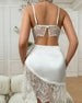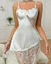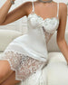 Sukienka piżamowa z haftowanej koronki w motyle i kwiaty