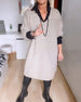 SPECYFIKACJA: Styl: Nieformalny Materiał: 100% Poliester Rodzaj Sukienki: Koszula Długość Sukienki: Do kolan Dekolt: Dekolt Kopertowy Wzór: Jednolity Kolor Typ rękawa: Rękaw standardowy Długość rękawa: Długi rękaw Detale: Guziki, Rozcięcie Typ sylwetki: Luźny krój Pora roku: Wiosna, Jesień, Zima Okazja: Na co dzień Paczka zawiera: 1 x Sukien...