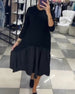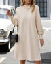 SPECYFIKACJA: Styl: Nieformalny Materiał: Bawełna z domieszką Rodzaj Sukienki: Trapezowa Długość Sukienki: Midi Dekolt: Okrągły dekolt Wzór: Jednolity Kolor Typ rękawa: Rękaw standardowy Długość rękawa: Długi rękaw Detale: Patchwork, Falbanka Typ sylwetki: Regularny Pora roku: Wiosna, Jesień, Zima Okazja: Na co dzień Paczka zawiera: 1 x Sukie...