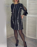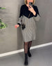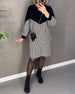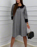 SPECYFIKACJA: Styl: Elegancki, Biznesowy Materiał: 100% Poliester Rodzaj Sukienki: Prosty Długość Sukienki: Do kolan Dekolt: Okrągły dekolt Wzór: Wzór geometryczny Rodzaj rękawa: Rękaw standardowy Długość rękawa: Rękaw 3/4 Detale: Patchwork Typ sylwetki: Regularny Pora roku: Wiosna, Jesień, Zima Okazja: Na co dzień, Praca Paczka zawiera: 1 x...