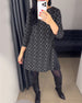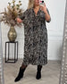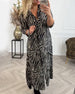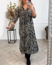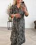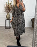 SPECYFIKACJA: Styl: Nieformalny Materiał: Bawełna z domieszką Rodzaj Sukienki: Prosty Długość Sukienki: Midi Dekolt: Dekolt Kopertowy Wzór: Wzór zwierzęcy Rodzaj rękawa: Rękaw standardowy Długość rękawa: Długi rękaw Detale: Guziki Typ sylwetki: Regularny Pora roku: Wiosna, Jesień, Zima Okazja: Na co dzień Paczka zawiera: 1 x Sukienka TABEL...