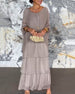 SPECYFIKACJA: Styl: Nieformalny Materiał: 100% Poliester Rodzaj Sukienki: Trapezowa Długość Sukienki: Maxi Dekolt: Okrągły dekolt Wzór: Jednolity Kolor Rodzaj rękawa: Rękaw standardowy Długość rękawa: Rękaw 3/4 Detale: Marszczona Typ sylwetki: Luźny krój Pora roku: Wiosna, Jesień, Zima Okazja: Na co dzień, Wakacje Paczka zawiera: 1 x Sukienk...