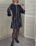 SPECYFIKACJA: Styl: Elegancki Materiał: 5% Spandex,95% Poliester Rodzaj Sukienki: Trapezowa Długość Sukienki: Do kolan Dekolt: Okrągły dekolt Wzór: W paski Rodzaj rękawa: Rękaw standardowy Długość rękawa: Długi rękaw Detale: Koronka Typ sylwetki: Regularny Pora roku: Wiosna, Jesień, Zima Okazja: Na co dzień, Wakacje, Impreza Paczka zawiera: ...