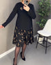 SPECYFIKACJA: Styl: Szykowny, Elegancki Materiał: Bawełna z domieszką, Koronka Rodzaj Sukienki: Prosty Długość Sukienki: Do kolan Dekolt: Stójka Wzór: Jednolity Kolor Rodzaj rękawa: Rękaw standardowy Długość rękawa: Długi rękaw Detale: Wydrążone, Koronka Typ sylwetki: Luźny krój Pora roku: Wiosna, Lato, Jesień Okazja: Na co dzień Paczka zawie...