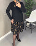 SPECYFIKACJA: Styl: Imprezowy Materiał: 94% poliester, 6% elastan Rodzaj Sukienki: Prosty Długość Sukienki: Do kolan Dekolt: Okrągły dekolt Wzór: Jednolity Kolor Rodzaj rękawa: Rękaw standardowy Długość rękawa: Długi rękaw Detale: Patchwork, Marszczona Typ sylwetki: Regularny Pora roku: Wiosna, Jesień, Zima Okazja: Wieczorne wyjście Paczka za...