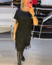 SPECYFIKACJA: Styl: Nieformalny, Szykowny Materiał: 100% Poliester Rodzaj Sukienki: Prosty Długość Sukienki: Do kolan Dekolt: Okrągły dekolt Wzór: Jednolity Kolor Rodzaj rękawa: Rękaw standardowy Długość rękawa: Krótki rękaw Detale: Frędzel Typ sylwetki: Regularny Pora roku: Wiosna, Lato Okazja: Na co dzień Paczka zawiera: 1 x Sukienka TAB...
