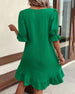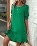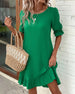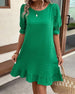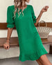 SPECYFIKACJA: Styl: Nieformalny, Szykowny Materiał: Bawełna z domieszką Rodzaj Sukienki: Prosty Długość Sukienki: Do kolan Dekolt: Okrągły dekolt Wzór: Jednolity Kolor Rodzaj rękawa: Latarnia rękaw Długość rękawa: Rękaw 1/2 Detale: Falbanka Typ sylwetki: Regularny Pora roku: Wiosna, Lato Okazja: Na co dzień Paczka zawiera: 1 x Sukienka TAB...