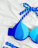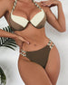 Zestaw strój kąpielowy z blokami kolorów wiązany na szyi
