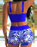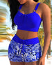SPECYFIKACJA: Styl: Urlop Materiał: 15% Spandex, 85% Poliester Okazja: Wakacje Dekolt: Cienkie ramiączka Wzór: Nadruk/Wzór Długość rękawa: Bez rękawów Rodzaj koszulki: Tankini Rodzaj biustonosza: Biustonosz nieusztywniany, biustonosz miękki Rodzaj dołu: Szorty Typ sylwetki: Szczupły Pora roku: Lato Detale: Odcinane Paczka zawiera: 1 x Tankini...
