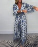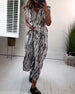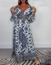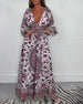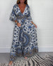 SPECYFIKACJA: Styl: Nieformalny, Urlop Materiał: 3% Spandex, 97% Poliester Wzór: Nadruk/Wzór Dekolt: W serek Rodzaj rękawa: Rękaw rozkloszowany Długość rękawa: Długi rękaw Rodzaj spodni: Szerokie nogawki Długość spodni: Długie Typ sylwetki: Regularny Pora roku: Wiosna, Lato Paczka zawiera: 1 x Sukienka TABELA ROZMIARÓW (cm) Roz...