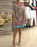 Damska sukienka z nadrukiem i rękawami trzy czwarte