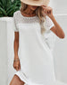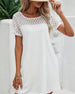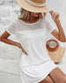 SPECYFIKACJA: Styl: Elegancki Materiał: Bawełna z domieszką Rodzaj Sukienki: Trapezowa Długość Sukienki: Do kolan Dekolt: Okrągły dekolt Wzór: Jednolity Kolor Rodzaj rękawa: Rękaw standardowy Długość rękawa: Krótki rękaw Detale: Koronka Typ sylwetki: Regularny Pora roku: Wiosna, Lato Okazja: Na co dzień, Wakacje Paczka zawiera: 1 x Sukienka ...