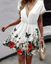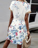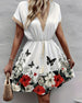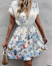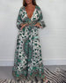 SPECYFIKACJA: Styl: Nieformalny, Urlop Materiał: 5% Spandex, 95% Poliester Rodzaj Sukienki: Trapezowa Długość Sukienki: Maxi Dekolt: W serek Wzór: Wzór w liście Rodzaj rękawa: Rękaw standardowy Długość rękawa: Krótki rękaw Detale: Guziki Typ sylwetki: Regularny Pora roku: Wiosna, Lato, Jesień Okazja: Na co dzień, Wakacje Paczka zawiera: 1 x S...
