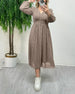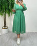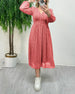 Jednokolorowa sukienka midi z rękawem i paskiem