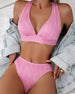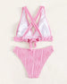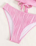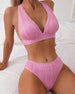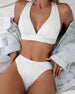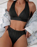 SPECYFIKACJE: Styl: Urlop Materiał: 82% Chinlon, 18% Spandex Okazja: Wakacje Dekolt: W serek Wzór: Jednolity Kolor Długość rękawa: Bez rękawów Rodzaj koszulki: Bikini Rodzaj biustonosza: Biustonosz nieusztywniany, biustonosz miękki Rodzaj dołu: Wysokie wcięcie Typ sylwetki: Szczupły Pora roku: Lato Detale: Z odkrytymi plecami, Sznurowane Pacz...