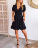 SPECYFIKACJA: Styl: Elegancki Materiał: Bawełna z domieszką Rodzaj Sukienki: Trapezowa Długość Sukienki: Nad kolanem Dekolt: W serek Wzór: Jednolity Kolor Rodzaj rękawa: Bufiasty rękaw Długość rękawa: Krótki rękaw Detale: Sznurowane, Falbanka Typ sylwetki: Regularny Pora roku: Wiosna, Lato, Jesień Okazja: Na co dzień Paczka zawiera: 1 x Sukie...