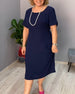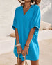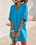 SPECYFIKACJA: Styl: Nieformalny Materiał: Bawełna z domieszką Rodzaj Sukienki: Prosty Długość Sukienki: Do kolan Dekolt: W serek Wzór: Jednolity Kolor Rodzaj rękawa: Rękaw standardowy Długość rękawa: Rękaw 1/2 Typ sylwetki: Regularny Pora roku: Wiosna, Lato Okazja: Na co dzień Paczka zawiera: 1 x Sukienka TABELA ROZMIARÓW (cm) Rozmiar B...