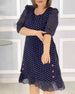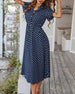 SPECYFIKACJA: Styl: Nieformalny Materiał: Bawełna z domieszką Rodzaj Sukienki: Trapezowa Długość Sukienki: Midi Dekolt: W serek Wzór: W kropki Rodzaj rękawa: Rękaw standardowy Długość rękawa: Krótki rękaw Detale: Sznurowane, Guziki Typ sylwetki: Regularny Pora roku: Wiosna, Lato Okazja: Na co dzień Paczka zawiera: 1 x Sukienka TABELA ROZMI...