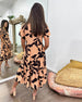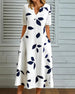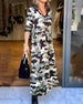 SPECYFIKACJE: Styl: Elegancki Materiał: Bawełna z domieszką Rodzaj Sukienki: Trapezowa Długość Sukienki: Maxi Dekolt: W serek Wzór: Nadruk/Wzór Rodzaj rękawa: Rękaw standardowy Długość rękawa: Nine Points Sleeve Typ sylwetki: Regularny Pora roku: Wiosna, Lato Okazja: Na co dzień Paczka zawiera: 1 x Sukienka TABELA ROZMIARÓW (cm) R...