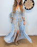 SPECYFIKACJA: Styl: Nieformalny, Urlop Materiał: Bawełna z domieszką Rodzaj Sukienki: Trapezowa Długość Sukienki: Maxi Dekolt: W serek Wzór: Nadruk/Wzór Rodzaj rękawa: Rękaw standardowy Długość rękawa: Rękaw 1/2 Detale: Rozcięcie Typ sylwetki: Regularny Pora roku: Wiosna, Lato Okazja: Na co dzień, Wakacje Paczka zawiera: 1 x Sukienka TABEL...