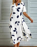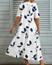 SPECYFIKACJA: Styl: Nieformalny, Elegancki Materiał: Bawełna z domieszką Rodzaj Sukienki: Trapezowa Długość Sukienki: Midi Dekolt: Dekolt Kopertowy Wzór: Nadruk/Wzór Rodzaj rękawa: Rękaw standardowy Długość rękawa: Krótki rękaw Detale: Kieszeń Typ sylwetki: Regularny Pora roku: Wiosna, Lato Okazja: Na co dzień, Wakacje Paczka zawiera: 1 x Suk...