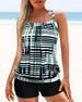 SPECYFIKACJA: Styl: Nieformalny, Urlop Materiał: 15% Spandex, 85% Poliester Okazja: Wakacje Dekolt: Halter Wzór: W paski Długość rękawa: Bez rękawów Rodzaj koszulki: Tankini Rodzaj biustonosza: Biustonosz nieusztywniany, biustonosz miękki Rodzaj dołu: Szorty Typ sylwetki: Regularny Pora roku: Lato Paczka zawiera: 1 x Strój kąpielowy TABELA...