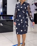 SPECYFIKACJA: Styl: Elegancki Materiał: Bawełna z domieszką Rodzaj Sukienki: Trapezowa Długość Sukienki: Do kolan Dekolt: W serek Wzór: W kropki Rodzaj rękawa: Rękaw standardowy Długość rękawa: Długi rękaw Detale: Patchwork, Sznurowane, Prześwitujące Typ sylwetki: Regularny Pora roku: Wiosna, Lato, Jesień Okazja: Na co dzień Paczka zawiera: 1...