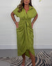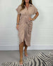 SPECYFIKACJE: Styl: Nieformalny, Szykowny Materiał: 100% Poliester Rodzaj Sukienki: Asymetryczny Długość Sukienki: Midi Dekolt: Dekolt Kopertowy Wzór: Jednolity Kolor Rodzaj rękawa: Opuszczone ramię Długość rękawa: Krótki rękaw Detale: Sznurowane, Guziki, Marszczona Typ sylwetki: Regularny Pora roku: Wiosna, Lato Okazja: Na co dzień Paczka za...