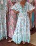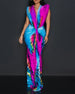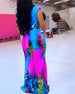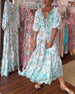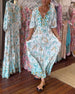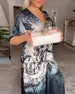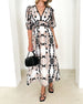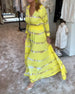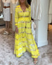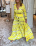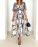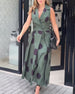Damska sukienka maxi z dekoltem w kształcie litery V i nadrukiem w liście