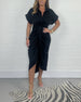 Sukienka z kontrastowymi kieszeniami i dekoltem w kształcie litery V