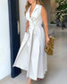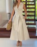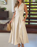 SPECYFIKACJA: Styl: Elegancki, Biznesowy Materiał: 40% Bawełna, 60% Poliester Rodzaj Sukienki: Bokserka Długość Sukienki: Maxi Dekolt: Dekolt Kopertowy Wzór: Jednolity Kolor Długość rękawa: Bez rękawów Detale: Patchwork, Kieszeń, Guziki Typ sylwetki: Regularny Pora roku: Lato Okazja: Na co dzień, Praca Paczka zawiera: 1 x Sukienka TABELA R...