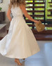 SPECYFIKACJA: Styl: Elegancki Materiał: 100% poliestru Rodzaj Sukienki: Prosty Długość Sukienki: Nad kolanem Dekolt: Okrągły dekolt Wzór: Jednolity Kolor Długość rękawa: Bez rękawów Detale: Patchwork, Falbanka Typ sylwetki: Regularny Pora roku: Lato Okazja: Na co dzień Paczka zawiera: 1 x Sukienka TABELA ROZMIARÓW (cm) Rozmiar ...