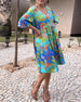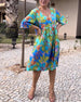 SPECYFIKACJA: Styl: Nieformalny, Elegancki Materiał: Bawełna z domieszką Rodzaj Sukienki: Trapezowa Długość Sukienki: Do kolan Dekolt: W serek Wzór: Nadruk/Wzór Rodzaj rękawa: Rękaw standardowy Długość rękawa: Rękaw 1/2 Detale: Marszczona Typ sylwetki: Regularny Pora roku: Wiosna, Lato Okazja: Na co dzień, Wakacje Paczka zawiera: 1 x Sukienka...