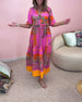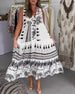 SPECYFIKACJA: Styl: Nieformalny, Urlop Materiał: Bawełna z domieszką Rodzaj Sukienki: Trapezowa Długość Sukienki: Maxi Dekolt: W serek Wzór: Nadruk/Wzór Rodzaj rękawa: Rękaw rozkloszowany Długość rękawa: Długi rękaw Detale: Guziki, Marszczona Typ sylwetki: Regularny Pora roku: Wiosna, Lato Okazja: Na co dzień, Wakacje Paczka zawiera: 1 x Suki...