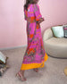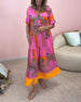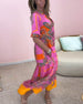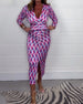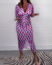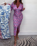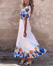 Długa sukienka z nadrukiem z dekoltem w kształcie litery V i rozszerzanymi rękawami