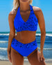 SPECYFIKACJA: Styl: Urlop Materiał: 15% Spandex, 85% Poliester Okazja: Wakacje Dekolt: Halter Wzór: Lampart Długość rękawa: Bez rękawów Rodzaj koszulki: Bikini Rodzaj biustonosza: Biustonosz nieusztywniany, biustonosz miękki Rodzaj dołu: Naturalny Typ sylwetki: Szczupły Pora roku: Lato Detale: Patchwork, Sznurowane Paczka zawiera: 1 x Strój k...