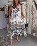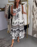 Sukienka bez rękawów z nadrukiem w stylu vintage