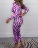 SPECYFIKACJE: Styl: Seksowny Materiał: Bawełna z domieszką Rodzaj Sukienki: Dopasowana Długość Sukienki: Maxi Dekolt: W serek Wzór: Nadruk/Wzór Rodzaj rękawa: Rękaw standardowy Długość rękawa: Długi rękaw Typ sylwetki: Szczupły Pora roku: Wiosna, Lato Okazja: Na co dzień, Wakacje, Impreza Paczka zawiera: 1 x Sukienka TABELA ROZMIARÓW (cm) Ro...