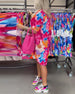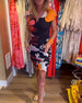 Sukienka z kolorowym nadrukiem i kieszeniami