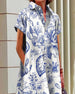 SPECYFIKACJA: Styl: Nieformalny Materiał: Bawełna z domieszką Rodzaj Sukienki: Prosty Długość Sukienki: Do kolan Dekolt: Dekolt Kopertowy Wzór: Kwiatowy Rodzaj rękawa: Rękaw standardowy Długość rękawa: Krótki rękaw Detale: Kieszeń, Guziki Typ sylwetki: Regularny Pora roku: Lato Okazja: Na co dzień Paczka zawiera: 1 x Sukienka TABELA ROZMIA...